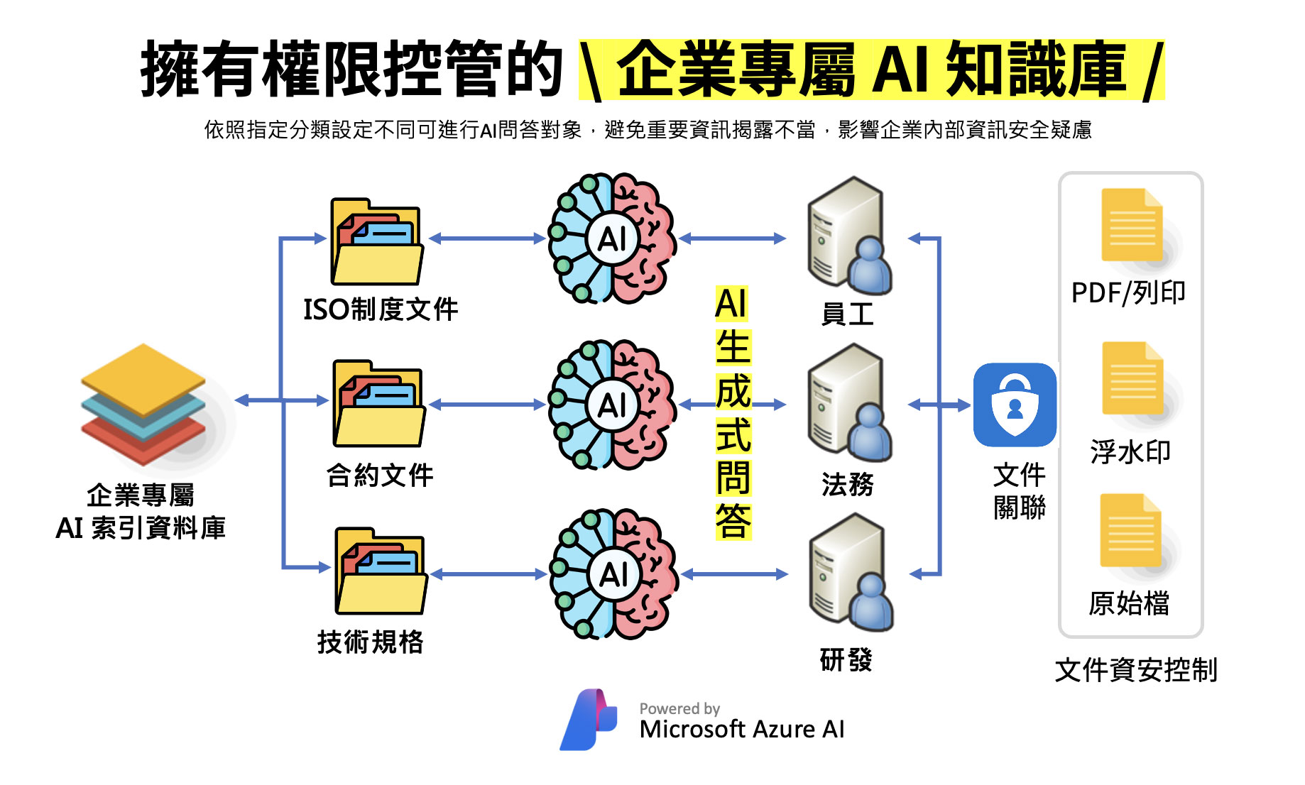 強大的集團化文管安控與生成式AI整合,高彈性架構適合各產業品制度/知識AI應用