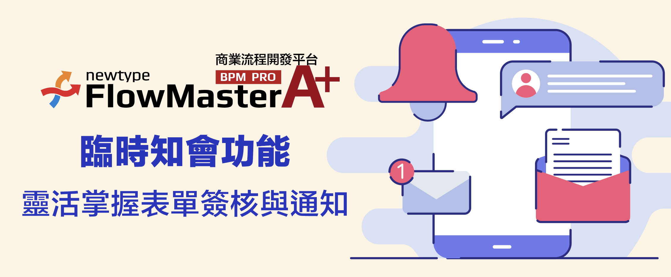 在企業日常運作中,當需要臨時通知相關人員,例如流程變更或通知同仁注意特定表單時,FlowMaster BPM企業流程管理平台的臨時知會功能,讓使用者能即時通知相關人員,確保重要訊息能迅速傳達。