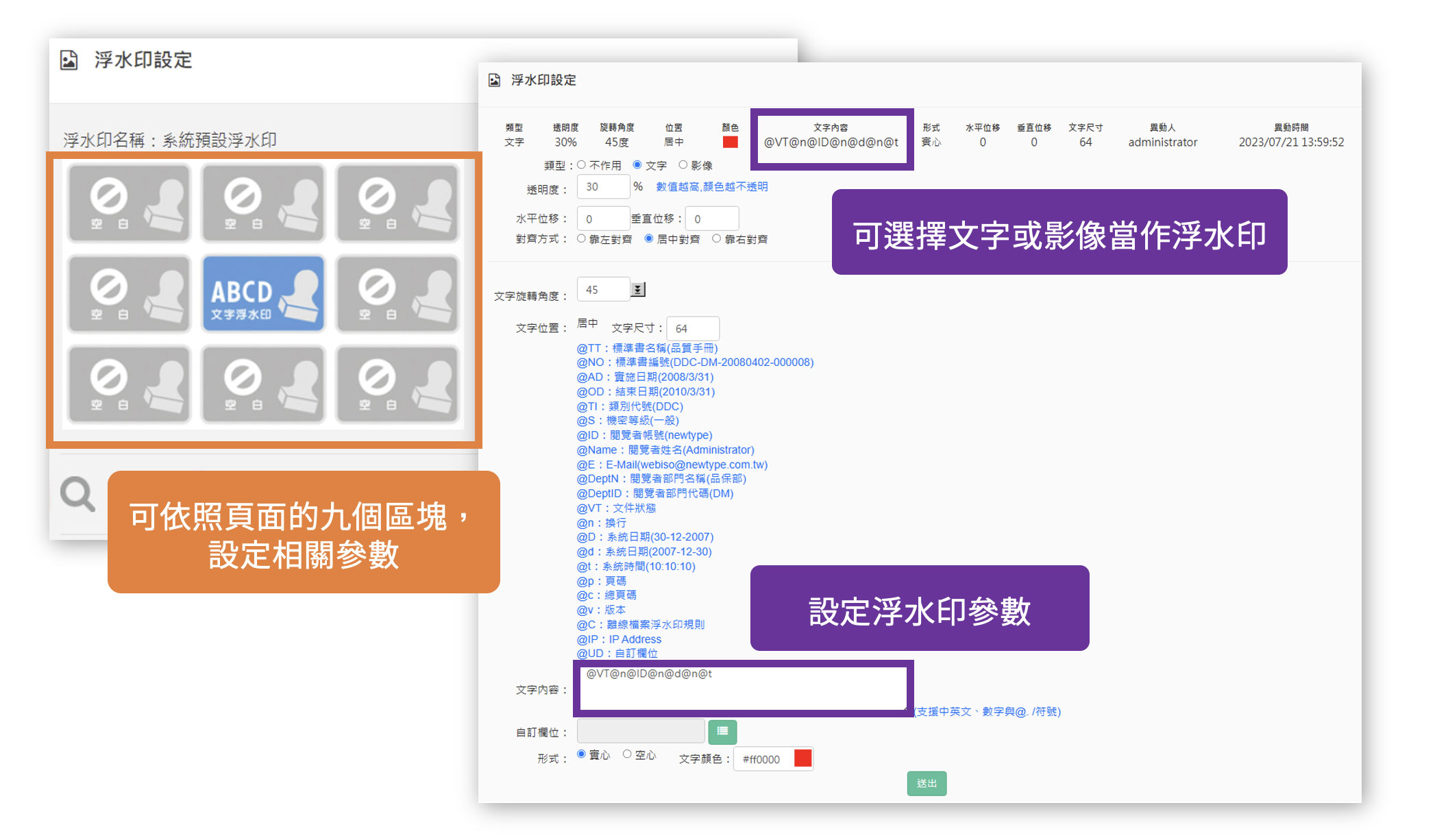 透過靈活且完善的浮水印機制,WebISO PRO A+文件制度管理平台不僅強化文件安全,也讓管理更簡單高效,協助企業在資訊流通與機密保護之間取得良好平衡,打造更完善的文件管理制度。
