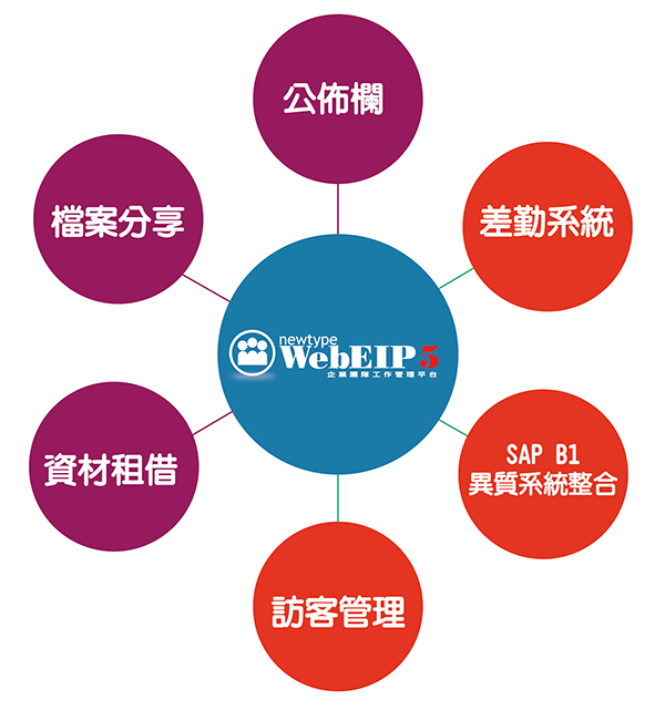 像是租借系統,可以清楚知道會議室租借使用狀況,以及與會客戶都在EIP裡顯示,若有來訪客戶也將訪客管理系統的資料匯進EIP裡,門口的警衛大哥也可以知道今日來訪客戶是誰,非常方便,當有食品機器需要做排程測試時,同仁也會透過EIP的實驗室管理進行申請,內部的訓練課程影片也上傳至檔案分享區,新進同仁可以在系統裡進行學習,安口將WebEIP應用的淋漓盡致,除了正規的功能也突破了許多EIP的應用,非常精彩!