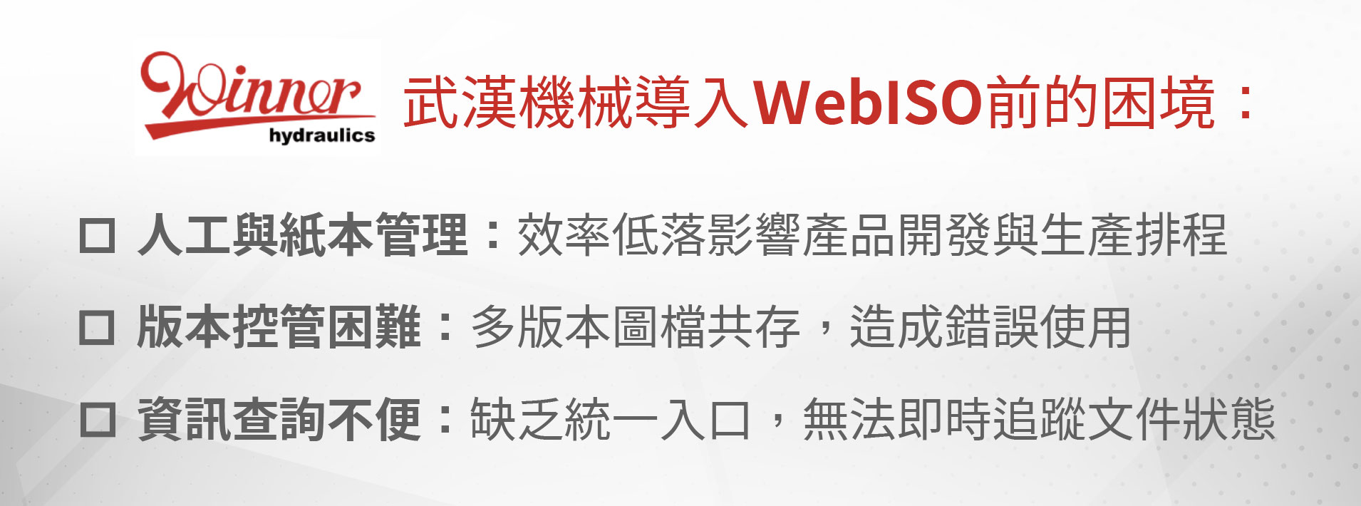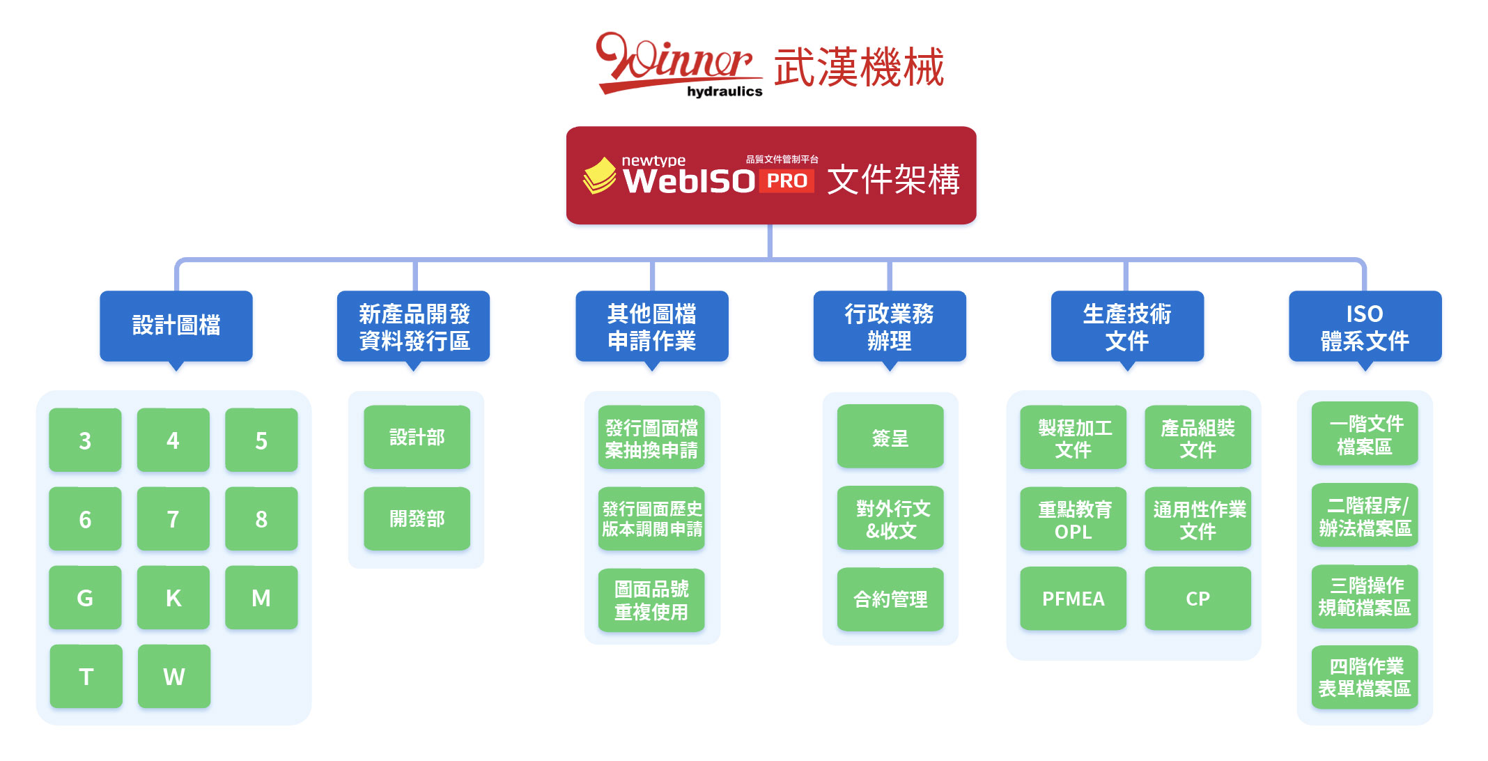 因此,經過多重評估,武漢機械決定導入WebISO PRO A+文件制度管理平台,期望透過系統解決文件更新不易、簽核效率低落及版本管理風險等問題,並建立即時透明的平台,讓各部門隨時取得正確的文件版本,確保生產順暢與資訊一致。