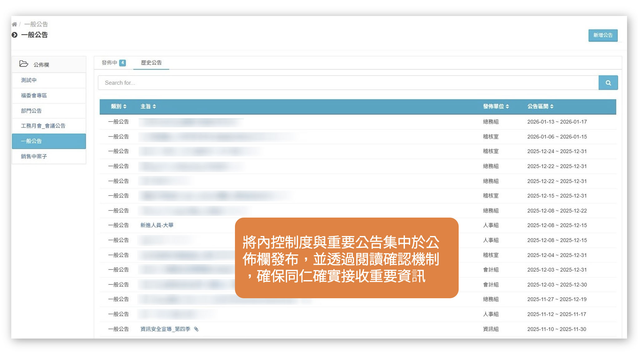 此外,公司也將內控制度與重要公告於公佈欄中集中發布,透過閱讀確認機制確保同仁實際接收與理解資訊,使制度自然融入日常流程中,成為管理核心依據,大幅提升公司治理與行政運作的透明度與可控性。
