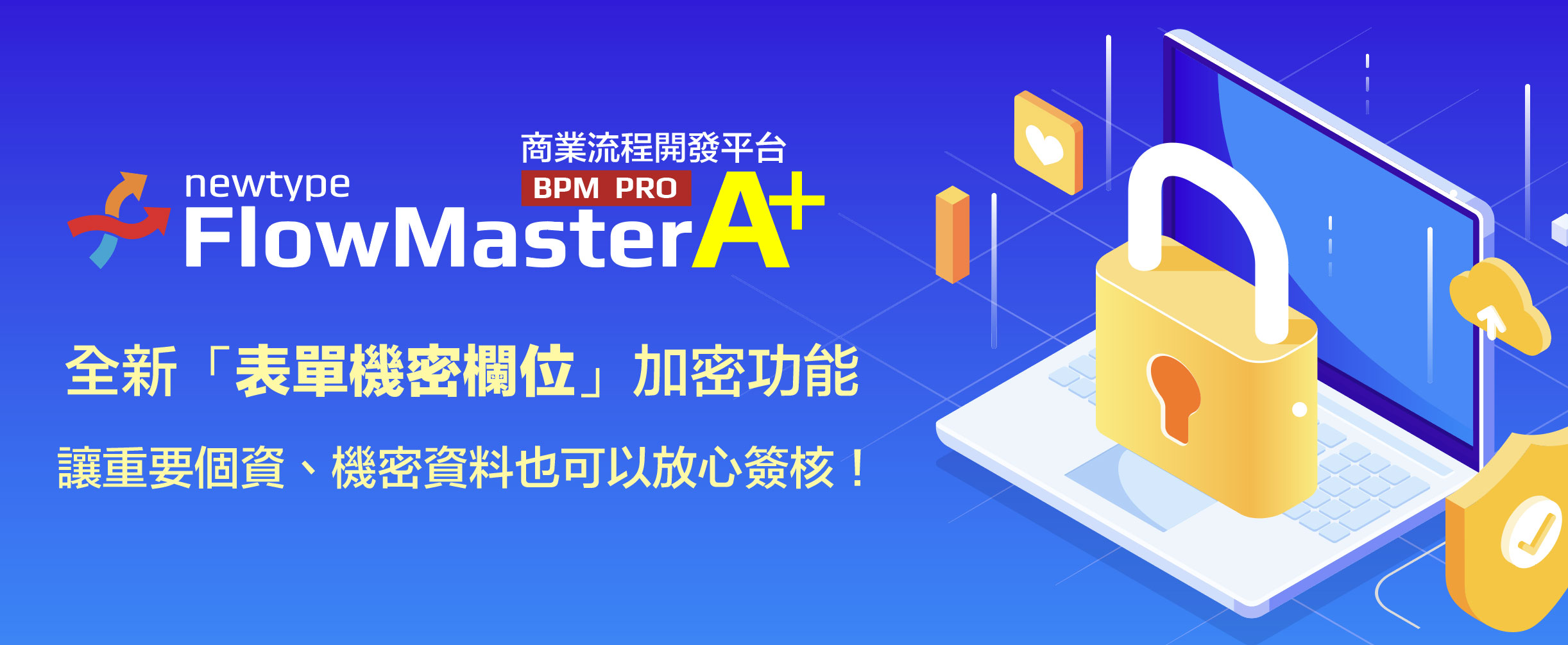 FlowMaster BPM PRO A+商業流程平台的NTFB視覺化表單開發工具,全新的「資料加密」功能,讓企業在靈活設計流程的同時,也能嚴格守護敏感資訊。