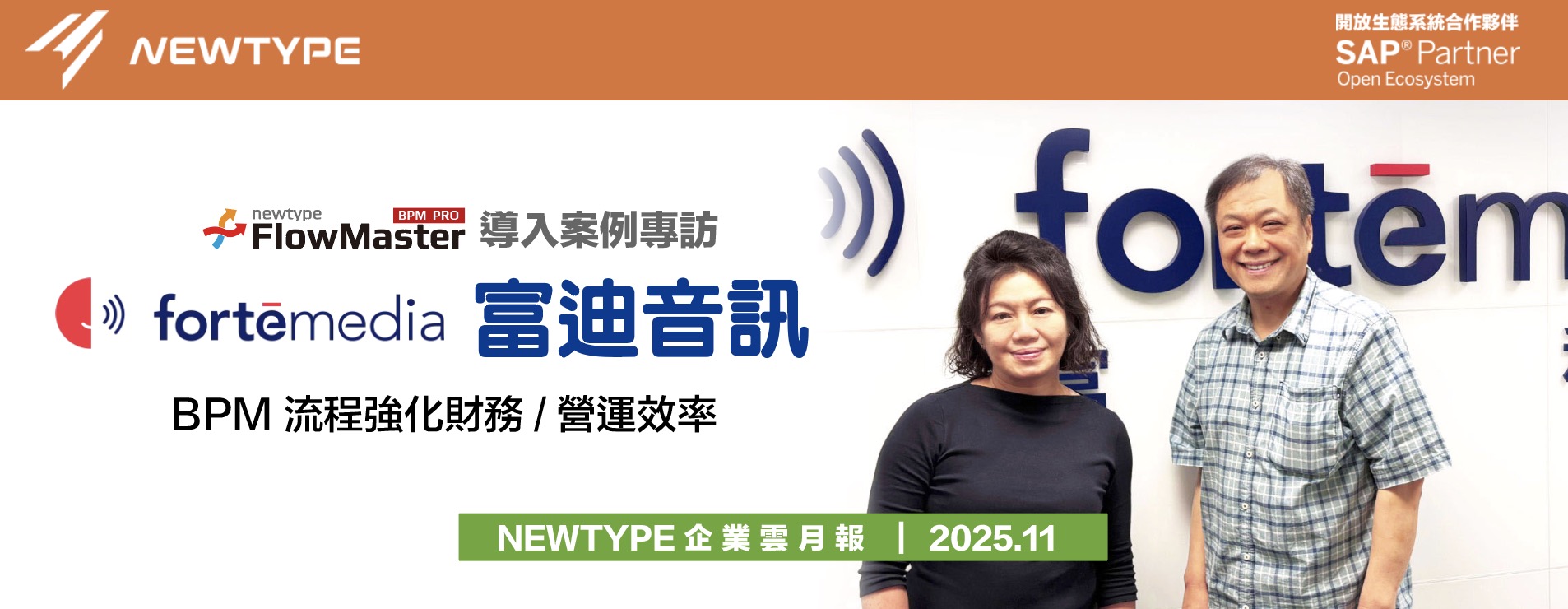 富迪音訊導入FlowMaster BPM PRO商業流程平台,取代傳統 Email 簽核,打造安全可控的數位化流程。透過財務相關表單數位化與自動留痕機制,提升簽核效率與內控透明度,同時強化跨部門協作與營運管理效能,為全球化營運奠定穩固基礎。