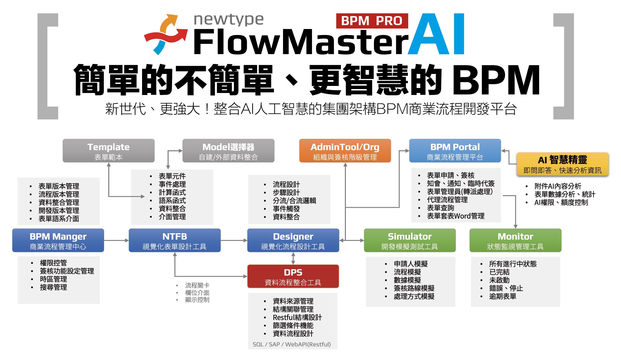全新FlowMaster BPM商業流程平台,正是您全球化BPM商業流程再造的最佳選擇!協助您再造企業高峰!