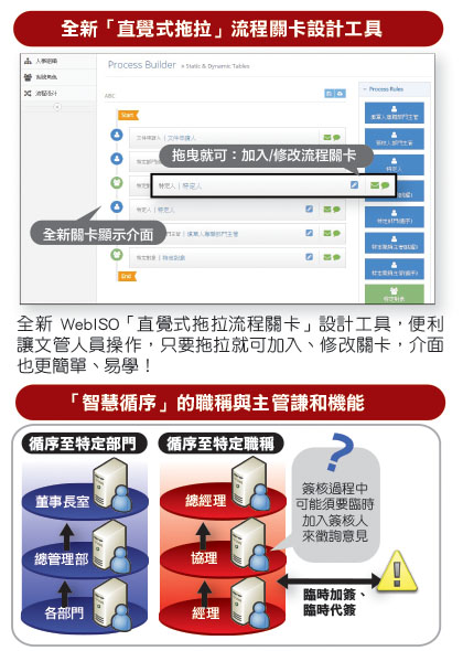- 全新「拖曳式流程關卡」設計介面:WebISO全新拖曳流程關卡設計介面,更加簡單、好用、易學!